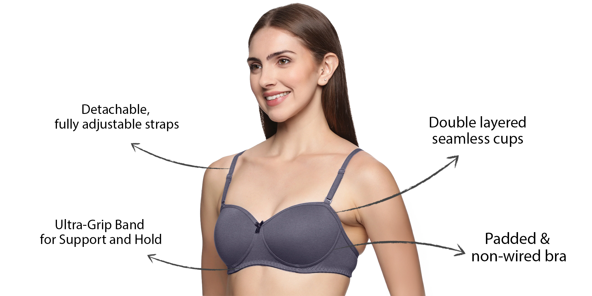 Non-Wired Padded Super Combed Cotton Strapless Bra with Ultra-Grip Support Band with Detachable Strap
